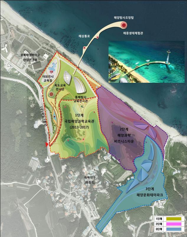 울진에 국내 최대 규모의 국립해양교육관이 들어설 전망이다. 지난 2008년부터 관련용역과 동해안권 발전종합계획 반영 등을 통해 해양교육관 건립을 준비해 온 경북도에 따르면 올해 기획재정부 주관으로 실시된 예비타당성조사 결과에서 B/C 1.17, AHP 0.623로 나타나 사업의 타당성이 인정된 것으로 알려졌다. 경북도는 그동안 해수부, 기재부 등 중앙정부와 KDI 등 관련 기관을 수십 차례 방문, 사업자체의 필요성과 타당성은 물론 동해안의 해양학적 가치, 국가균형 발전을 위한 동해안 지역의 개발 필요성 등을 끈질기게 설득해 왔다. 미국과 프랑스, 호주, 일본 등의 해외자료도 지속적으로 수집, 제공하는 등 다각적 노력도 병행됐다. 동해안권해양교육관이 들어서면 그동안 서‧남해의 해양인프라 구축에 비해 상대적으로 소외되었던 동해안이 서‧남해와 같은 급의 해양인프라를 갖게 될 것으로 경북도는 해석했다. 경북도는 이곳을 서해안의 국립해양생물자원관(충남서천, 연구기능), 남해안의 국립해양박물관(부산 영도, 전시기능)과 어깨를 나란히 할 수 있도록 해양문화와 해양교육기능을 부여할 예정이라고 밝혔다. 특히, 가장 한국적이고 세계적인 모델을 구축해 대한민국이 해양강국으로 도약하는 발판을 마련하는 한편, 지역 해양산업 발전의 원천이 되도록 중앙정부와 울진군과 협력을 강화하겠다고 밝혔다. 국립해양과학교육관의 규모는 114,379㎡ 부지에 건축면적 12,260㎡ 3층 규모다. 이곳에는 교육전시 시설인 해양탐사조망탑, 해중생태체험관, 해상통로등(2,260㎡)와 독도교육전시관(3,500㎡)이 설치된다.특히, 해중생체험관이 들어서게 될 바닷속은 한류와 난류가 교차하고 있어 다양한 바닷 생물 및 어족 자원들이 있어 관광객들의 인기를 얻을 것으로 예상된다.
