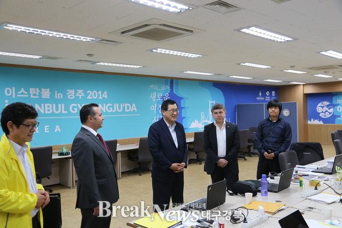 이날 회의를 주재한 주낙영 행정부지사는 12일부터 22일까지 11일간 황성공원, 예술의 전당, 문화엑스포 등 경주일원에서 열리는 ‘이스탄불 in 경주 2014’에 깊은 관심을 보이며 ”실크로드의 시작과 끝인 경주와 이스탄불이 만나는 국제적인 문화교류의 장이 될 이번 엑스포는 세계의 이목이 집중되는 만큼 손님맞이와 안전 및 행사 운영 전반에 걸쳐 간부들이 직접 현장을 하나하나 챙겨 달라“고 당부했다.
