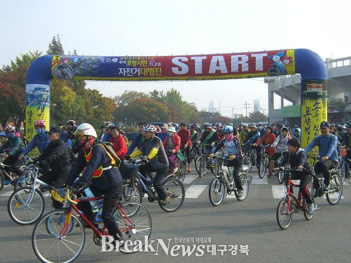 포항향토청년회가 주관하고 포항시가 후원하는 이번 행사는 자전거 동호회 및 각급 기관단체, 시민 등 1,500여명이 참가할 예정이며 종합운동장을 출발해 형산강 체육공원과 포항운하관을 거쳐 종합운동장으로 되돌아오는 7.4㎞구간에서 펼쳐진다. 별도 신청절차 없이 자전거를 좋아하는 시민이면 누구나 참가할 수 있으며 행사에 참가한 선착순 500명에게는 기념품으로 버프스카프를 증정하고, 추첨을 통해 자전거 100대 등 푸짐한 경품도 지급할 예정이다. 또, 이날 행사장에서는 자전거 수리 및 자전거 용품 전시, 외발자전거 타기 시범 등 다양한 부대행사와 풍물놀이, 댄싱팀 등의 흥겨운 공연도 열린다. 한편, 포항시는 자전거인구 저변확대를 위해 전 시민을 대상으로 한 자전거보험 가입과 호미곶 및 포항운하 등 주요관광지에 자전거 무료대여소를 운영하고 있으며 도로망 확충과 방치자전거 수리, 공공자전거 보관대 설치, 자전거 무료 교실 등의 시책을 추진하고 있다. <저작권자 ⓒ 브레이크뉴스 대구경북 무단전재 및 재배포 금지>