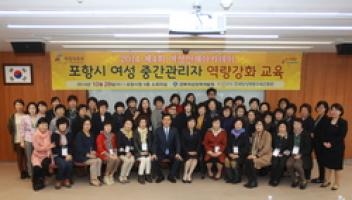 경북여성정책개발원(원장 김윤순)은 지난 29일 시청 소회의실에서 새로운 성장동력인 여성인재를 지역사회의 핵심 인력으로 성장시키기 위해 포항시 여성 시의원, 여성 이․통장 등 여성중간관리자를 대상으로 제4회 여성인재아카데미 교육을 가졌다.
