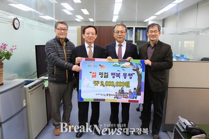 포항시시설관리공단, ‘행복동행 사랑 나눔’ 기부금 전달!“이웃들에게 따뜻한 정(情)을 나누는” 설 명절맞이 사랑나누기 기부활동 펼쳐