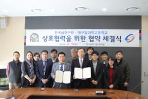 한국뇌연구원(원장 서유헌)은 지난 9일 대구일과학고등학교(교장 박헌영)와 학술교류 및 과학영재 육성을 위한 상호협력 협약(MOU)을 체결했다.