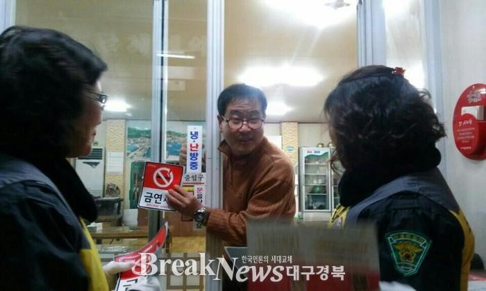 포항시 북구보건소 주부금연서포터즈팀이 매주 목요일 야간시간에 일반음식점과 호프집 등 다중이용시설에 대한 금연구역 지도점검을 실시하고 있다.