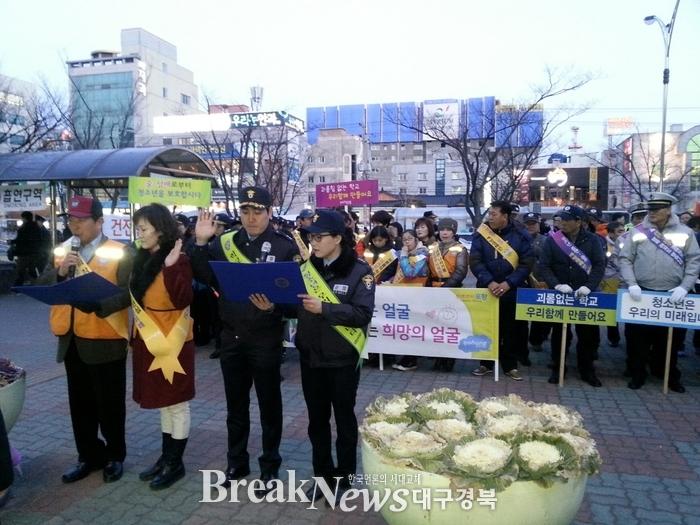이번 캠페인은 졸업시즌과 명절 연휴, 단기 봄방학으로 자칫 헤이해질 수 있는 청소년들의 마음가짐을 바로잡고 청소년 탈선을 조장하는 유해환경업소로부터 청소년을 보호하기 위해 마련됐으며, 남부경찰서와 포항교육지원청, 청소년지도위원, 청소년유해환경감시단, 안전지킴이운동본부, 법사랑위원 포항지역연합회 등 관내 7개 기관·단체 회원 100여명이 참석한 가운데 진행됐다.