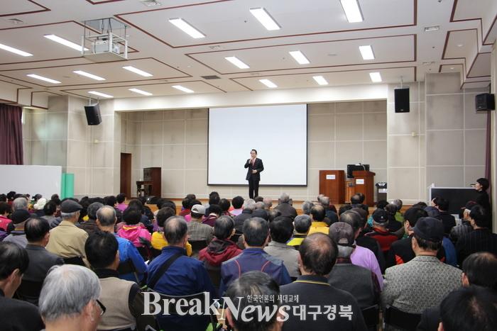 새누리당 박명재(포항남·울릉) 국회의원은 16일 포항시노인복지회관에서 200여 어르신을 대상으로 차의과학대학교 총장의 경험을 살린 '행복한 삶, 아름다운 청춘'을 주제로 행복한 노후와 건강관리에 대한 특강을 실시해 큰 호응을 받았다.