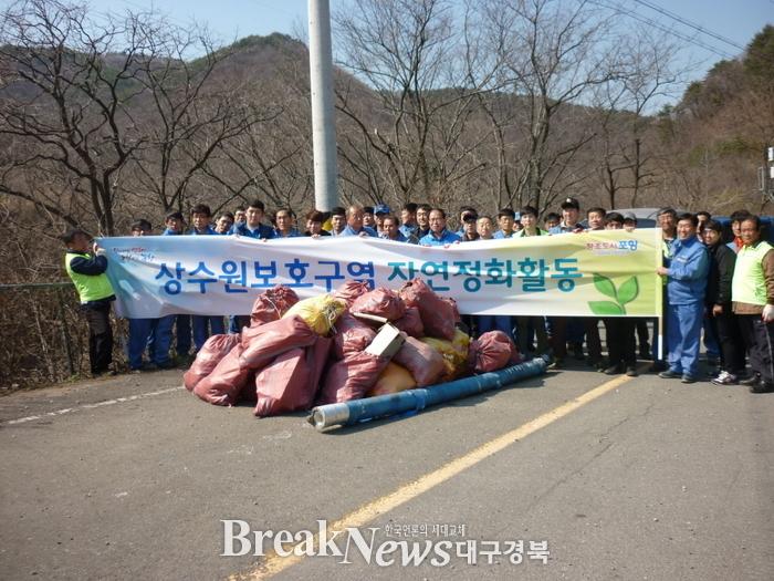포항시 맑은물사업소가 지난 25일 ‘세계 물의 날’을 맞아 상수원보호구역 지킴이, 공무원 등 80여명이 참여한 가운데 진전지 상수원보호구역 주변에서 대대적인 정화활동을 펼쳤다.
