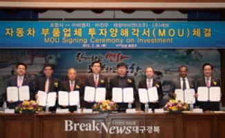 이날 행사에는 이강덕 포항시장과 이병석 국회의원, 이칠구 포항시의회 의장, 방글라데시 현역 국회의원인 이나뮬 하큐(Enamul Haque) 에나(ENA)그룹 회장과 현승진 위나 동방코리아 대표이사를 비롯한 국내외 기업 대표와 임원진 등 30여명이 참석했다. 이번 투자양해각서 체결은 ㈜BMG사가 한국, 중국, 방글라데시 파트너와 추진중인 전기차 프로젝트가 시발점이 되어 이뤄진 것으로, 이 프로젝트는 ㈜BMG사의 전기자동차 핵심기술을 중국 중타이자동차 차체 및 중국 산동위나환보전원유한공사(※한국지사 ㈜위나동방코리아) 배터리, ㈜진우의 자동차부품과 결합시켜 방글라데시 현지에 전기자동차를 수출하는 합작사업이다. 이날 행사에 참여한 기업들은 전기자동차 핵심기술을 보유한 ㈜BMG사가 방글라데시 에나그룹, 중국 중타이자동차(Zotye Auto), ㈜위나동방 코리아 및 한국의 ㈜진우와 공동으로 추진중인 방글라데시 합작공장 조인식과 전기자동차 Z100(소형승용차), T100(소형트럭) 신차발표회 기술협약식및 시승행사도 가졌다. 이강덕 포항시장은 “자동차 관련 기업의 포항유치로 일자리 창출은 물론 철강일변도인 포항의 산업구조가 다변화 되고 3국 합작 프로젝트로 포항에서 조립된 전기자동차가 영일만항을 통해 방글라데시로 수출됨으로써 포항영일만항이 환동해 물류중심으로 도약하는 계기가 될 것으로 기대한다”고 말했다. 이달 전기차 관련연구소를 충남태안에서 포항으로 이전한 ㈜BMG사 김건섭 대표는 “비엠지사가 보유한 전기자동차 핵심기술을 활용해 자동차산업의 불모지인 포항을 전기자동차와 자동차 부품산업의 새로운 메카로 육성하는데 기여하겠다”고 말했다. ㈜진우는 포항이 고향인 고원득 회장이 지난 2000년 울산에 설립해 현재 4개 공장에 400여명의 종업원과 3개의 계열사를 둔 자동차부품 중견 기업으로 이번 MOU 체결을 통해 영일만3일반산업단지 45,600㎡부지에 200억원을 투자해 250여명의 직원을 신규 채용할 계획이다. 또한 태창아이엔디(주)와 ㈜세부는 영일만3산업단지 내 각각 16,500㎡와 10,000㎡규모에 100억원과 60억을 투자해 자동차 부품생산으로 190여개의 신규 일자리를 창출하게 된다. 한편, 중국 중타이자동차는 2005년 설립돼 현재 중국내 최대 민간자동차 기업 중 하나로 성장했으며 중국내 SUV 수출 1위의 기업이다. 중국 산동 위능환보전원유한공사는 지난 2006년 설립된 전기자동차 배터리 제조업체로서 리튬인산철전지 분야에서 중국내 생산 1위 기업이다. <저작권자 ⓒ 브레이크뉴스 대구경북 무단전재 및 재배포 금지>