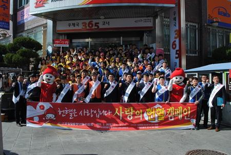 포항향토청년회(회장 안석호)가 지난 23일부터 28일까지 일주일간 시내 우체국 앞에서 300여명의 회원들이 참석한 가운데 사랑의 헌혈 릴레이 캠페인을 개최했다.