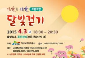 달빛걷기 행사는 오후 6시 반에 호반광장을 출발하여 목월공원과 보문수상공연장을 지나 물너울교를 건너 다시 보문수상공연장으로 돌아오는 코스로 약 5km를 걷게 된다. 특히, 이번 행사는 다음 날 벚꽃마라톤이 예정되어 있어 참가자들이 몸풀기 코스로 참여한다면 다음 날 최적의 컨디션으로 최상의 실력을 발휘할 수 있어 더욱 의미 있는 행사가 될 예정이다. 우선 출발장소인 호반광장에 위치한 달조형물에는 지난 달빛걷기의 다양한 사진이 파노라마처럼 펼쳐진다. 또한 출발에 앞서 행사의 재미를 더해 줄 OX퀴즈와 각자의 소망을 담은 사랑의 소원지 달기, 사전접수를 받은 남녀 커플의 프러포즈 이벤트가 진행된다. 여기에 보문호반광장의 새로운 명물인 느린우체통을 통한 우편엽서 보내기와 걷기 구간마다 사랑과 관련된 다양한 미션존이 진행된다. 행사가 끝나는 종점인 보문수상공연장에서는 커플, 가족 등이 함께 즐길 수 있는 통기타공연이 봄날의 운치를 더할 예정이며 참가자들의 흥미를 더해줄 경품행사가 마지막으로 진행된다. 4월 달빛걷기 행사에는 보문호반길 일대에 벚꽃들이 장관을 이룰 예정이여서 잔잔한 음악과 함께 따뜻한 봄날을 만끽하며 호반길을 걸으면 잊지 못할 추억과 감동을 선사 할 것으로 기대된다. 달빛걷기 참가신청은 사)한국체육진흥회 홈페이지(www.walking.or.kr)를 통한 인터넷 접수와, 전화번호 02-2272-2077, 02-2274-7077를 통한 전화 접수를 받으며, 참가비는 무료이고 사전접수 선착순 1,000명에 한해 기념품이 제공된다. 행사 당일 호반광장에서 현장접수도 가능하다. 경상북도관광공사 관계자는 "벚꽃이 가장 절정인 이번 4월 달빛걷기에는 더욱 풍성하고 다채로운 행사가 되도록 최선을 다하겠다."며 "벚꽃마라톤 참가자 여러분들과 지역 주민, 관광객들의 많은 참여를 바란다."고 밝혔다.