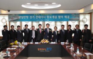포항시는 지난 3일 시청 중회의실에서 천경해운(주)과 포항영일만항 정기 컨테이너 항로개설 협약식을 체결했다.