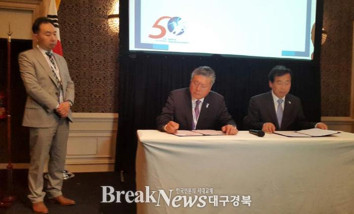 MOU 서명에는 최영조 경산시장과 최태훈 회장이 직접 참석했다. 이번 MOU 체결은 지역의 중소기업이 중남미 지역에서 수출활동을 원활히 할 수 있도록 중남미한상연합회가 각종 지원을 하도록 하는 업무협력의 성격을 띠고 있다. 중남미한상연합회(회장 최태훈)의 주최로 지난 12일부터 15일까지 4일간 부에노스아이레스 인터콘티넨탈 호텔에서 열린 이번 한상대회는 중남미 20개국에서 활동하는 한인 기업인들 200여명이 참석하는 첫 대회로 한인기업전시회, 한‧미주 섬유패션 교류협력 포럼 등 다양한 내용으로 중남미 한상들이 단합할 수 있는 기반과 네트워크 구축을 통한 활성화를 목표로 하고 있다. <저작권자 ⓒ 브레이크뉴스 대구경북 무단전재 및 재배포 금지>