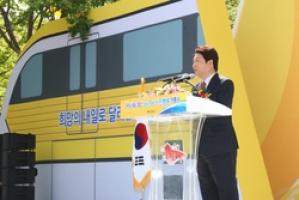 국내 최초의 도심 모노레일 지상철인 대구철도 3호선이 23일 개통했다. 10여미터가 넘는 지상위를 달리는 예쁜 꼬마열차 모양을 하고 있는 3호선은 이날 당연한 주인공이었다. 그러나, 실제 3호선보다 더욱 주목을 받은 사람은 권영진 대구광역시장이었다.