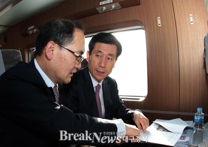 | ▲ 이강덕 포항시장이 23일 오전 KTX를 타고 가며 지역현안사항을 점검하고 있다. © 포항시 제공 |