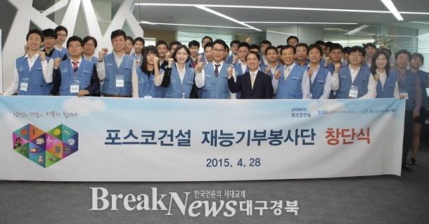 포스코건설(사장 황태현)이 28일 인천 송도사옥에서 ‘재능기부 봉사단’ 창단식을 가졌다고 밝혔다.