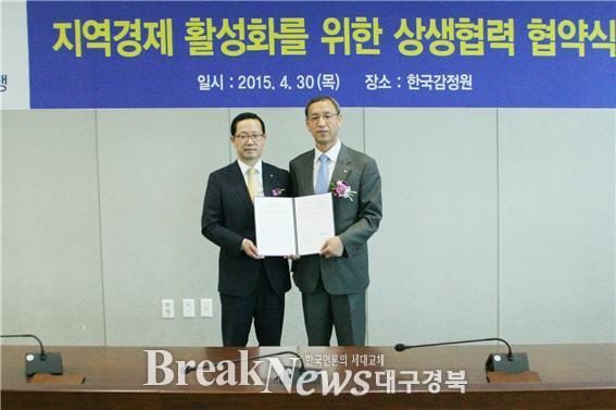 한국감정원(서종대 원장)과 IBK 기업은행(권선주 은행장)은 30일 한국감정원 대구 본사에서 지역경제 활성화를 위한 상생협력협약을 체결했다.