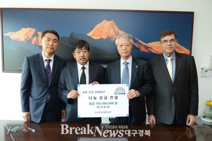 조석 사장은 “국가적인 재난으로 큰 어려움을 겪고 있는 네팔 주민들을 돕기 위해 성금을 모았다”며, “이 성금으로 네팔 국민들이 시련을 극복하는데 조금이라도 도움이 됐으면 한다”고 말했다. 한편 한수원은 네팔의 수도 카트만두에서 900km 떨어진 차멜리아 지역에 수력발전소를 건설중이며, 카트만두에 위치한 연락사무소와 숙소에도 피해가 발생해 파견중인 직원들이 어려움을 겪고 있는 상황이다. 한수원은 이번 대지진으로 피해를 입은 모든 네팔 주민들에게 깊은 애도의 말을 전하고, 하루 빨리 피해복구가 이루어지기를 기원했다. 또한 앞으로도 범세계적 재난 사고가 발생할 경우 인도적 지원을 통해 글로벌 기업으로서의 사회적 책임을 다한다는 방침이다. <저작권자 ⓒ 브레이크뉴스 대구경북 무단전재 및 재배포 금지>