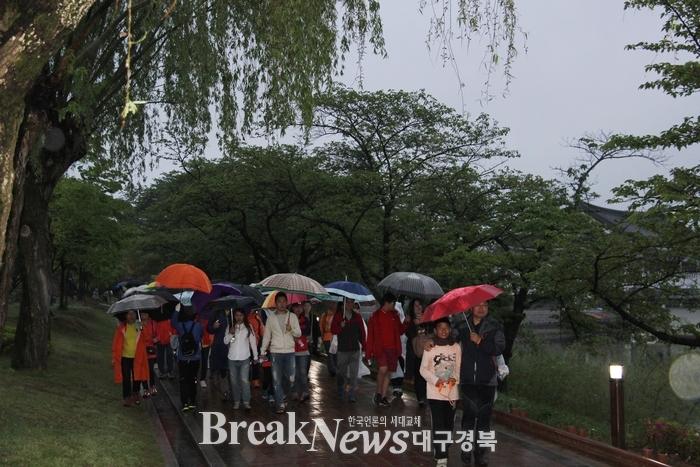 참가자들은 봄비 내리는 보문호반길을 산책하듯 걸으며 각종 미션을 통해 추억을 만들고 보문수상공연장에서 달빛공연도 보면서 보문의 밤을 즐겼다. 특히, 이번 미션릴레이 중 하나인 사랑의키스존은 사랑하는 사람에게 키스마크를 찍어주는 이벤트로 참가자들에게 큰 인기를 끌었다. 지난해 3월부터 매월 음력보름에 개최하고 있는 보문호반 달빛걷기는 매회 마다 관광객과 시․도민 1천여 명 이상이 참여해 호반길을 걸으며 일상생활의 스트레스를 해소하고, 즐거운 추억도 만들고, 건강도 챙기는 걷기행사로 꾸준한 사랑을 받고 있다. 한편 5월 보문수상공연장에서는 보문을 찾는 관광객들을 위해 오는 9일 ‘경주팝스일레븐’의 관악연주, 16일 ‘기타마을’의 통기타. 노래공연, 23일 ‘붐붐색소폰예술봉사단’의 관악연주, 30일 ‘뮤토피아’의 밴드공연이 해당일 오후 7시에 개최된다. <저작권자 ⓒ 브레이크뉴스 대구경북 무단전재 및 재배포 금지>