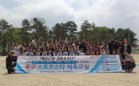 김도근 코치와 조동건, 이현웅, 박준태 선수가 ‘2014 스포츠스타 체육교실’(‘2014’는 주관 단체 ‘대한체육회’에서 결정한 공식 사업 명칭) 의 일환으로 봉화군 도촌초등학교를 찾아 학생들과 즐거운 추억을 공유했다.