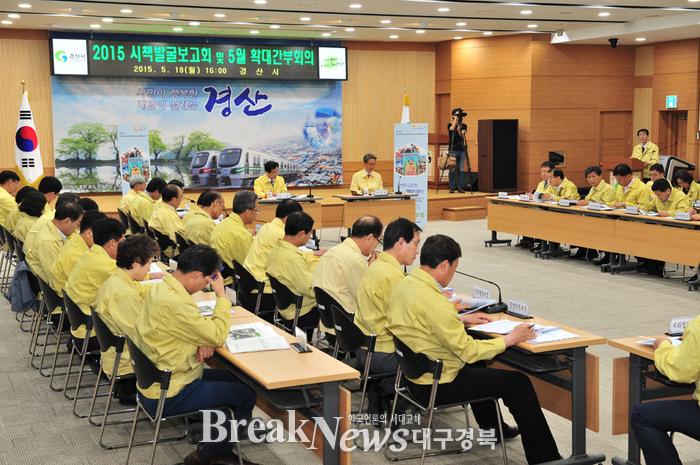 경산시는 지난 18일 오후 4시 시청 대회의실에서 최영조 시장의 주재로 국․소장과 주요 부서장 등 간부공무원들이 참석한 가운데 새로운 시책 보고회를 가졌다.