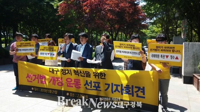 정의당 대구시당이 ‘대구 정치 혁신을 위해서는 선거법개정이 우선되어야 하고, 이를 위해 개정 운동은 불가피하다“고 선언했다.