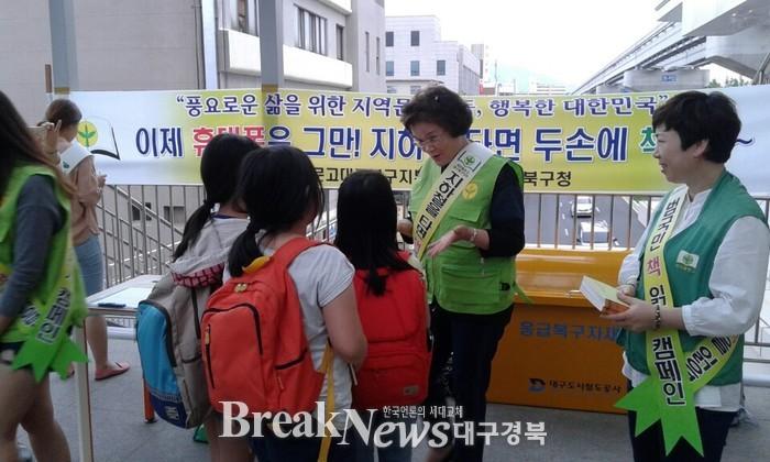 새마을문고북구지부(회장 서태옥)는 지난 22일 오후 6시, 도시철도 3호선 북구청역에서 새마을문고회원과 Y-SMU대구북구포럼 대학생들이 퇴근하는 시민들을 대상으로 '책 읽기 캠페인'을 실시했다.