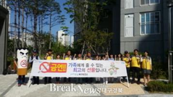 포항시 북구보건소는 27일 제28회 세계 금연의 날(5.31)을 맞아 건강아파트로 운영하고 있는 한양수자인 아파트(장량동 소재) 정문에서 주민과 함께 금연 홍보 캠페인을 실시했다.