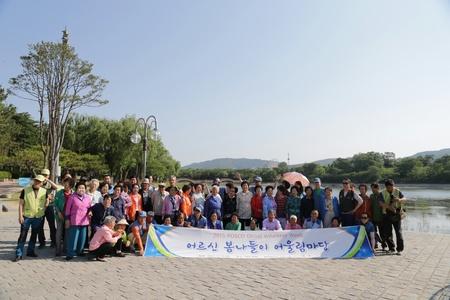 ▲ 포항제철소 봉사단과 어르신들이 함께 경주 보문호 주변에서 즐거운 시간을 보내는 모습. © 포스코 포항제철소 제공 | |