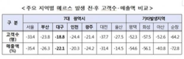 중소기업 10곳 중 5곳(53.7%)은 메르스 확산으로 경영상 피해를 입고 있고, 소상공인과 전통시장 역시 매출액은 3506%, 고객은 34.9% 각각 줄어든 것으로 파악되고 이 있다.특히, 대표적 관광도시인 경주는 타 지역 메르스 발생 후, 지역 상가 매출액이 50%이상 감소한 것으로 조사됐다.