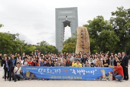 | ▲ 유라시아 친선특급 대표단 엑스포 공원 방문 모습 © 경주세계문화엑스포 제공 | |