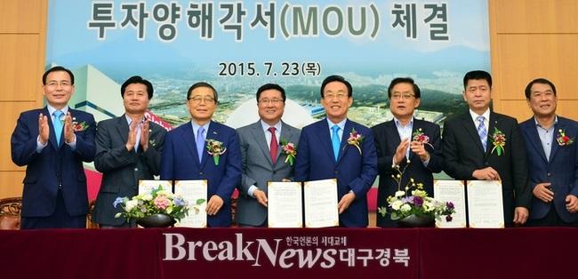 이날 협약식에 참석한 김관용 경북도지사 남유진 구미시장 및 김태환, 심학봉 국회의원은 일제히 LG디스플레이(주)에 감사의 뜻을 전했다. 김 지사와 남 시장은 “LG의 투자는 기업의 투자라는 인식에 앞서 지역균형발전 차원에서 높이 평가되어야 할 부분”이라며 “ 모두가 지방을 떠나려 할 때 LG는 지방에 투자를 하고 있다”고 의미를 부각시켰다. 남유진 시장은 특히, 파주 이전 당시 구미시민들이 LG 주식을 대거 구매한 사실을 전하면서 구미의 LG 사랑은 특별함을 강조했다.김 지사도 “마음 같아서는 큰절이라도 하고 싶다”는 뜻을 가감 없이 전하면서 특히 노조에게도 협력에 감사하다는 말을 잊지 않았다. 김태환 의원과 심학봉 의원도 구미와 LG는 동반해 발전해야 함을 강조하면서 인력수급 및 정주여건 등의 인프라를 지속적으로 확장하는 데 지역과 기업이 협력해 나가야 한다고 거듭 강조했다. 지역의 관심이 이토록 높을 수밖에 없는 이유는 지역경제가 바닥을 치고 있는 상황에서 가뭄에 물을 만났기 때문이라는 분석이다. 현장에는 이례 없이 경북도와 의회, 구미시와 의회는 물론, 언론에서도 깊은 관심을 보였다. 구미시와 경북도는 LG의 이같은 계획을 어떻게 일궈냈을까. 구미시에 따르면 LG는 신규투자의 양산체제 구축을 위해 오랜 기간 동안 숙려의 과정을 거치면서 구미를 선택한 것으로 알려졌다. 구미시에서는 이번투자가 성사되기까지 LG디스플레이(주) 임원 및 노조간부 등과 수시로 소통하는 지속적 만남을 가져 왔으며, 지난 5월에는 ‘LG 구미공단 입주 40주년’시민 환영분위기 조성을 위해 거리 배너기를 설치하는 등 남다른 정성과 애정을 담아왔다. 이를 두고 지역에서는 LG에 대한 구미시민의 무한 애정이라고 평하기도 했다. 이날 신규투자 계획은 구미시와 LG와의 40년 우정을 재확인한 것으로 평가되고 있다. 남은 것은 두 기관과 기업이 함께 역사를 만들어 갈수 있느냐는 것. LG는 1975년 금성사로 구미에 첫 발을 내디딘 이우, LG전자와 LG이노텍, LG디스플레이, LG실트론, 루셈 등 총 5개 계열사로 확장했다. 이들 5개 기업은 해마다 투자를 확대하면서 신사업분야까지 진출, 지역경제를 견인하고 있다. 구미시 관계자는 “LG의 이 같은 노력은 관련 협력기업들의 생산능력 확대와 일자리 창출로 선순환되어 근로자 12만 시대를 여는 결정적 역할을 했으며, 특히 중소기업 생산현장의 기술혁신에도 많은 영향을 미쳐 왔다”며 “기술력 중심의 창조경제 생태계 조성에도 크게 이바지 하고 있다”고 평가했다. 경북도와 구미시도 LG의 노력에 힘을 보태왔다. 구미시는 가장 먼저 친기업 정책을 펴면서 지역사회와의 공존을 정착시켰고, 이들 기업이 다시금 투자를 할 수 있도록 손을 잡아 주는 등 다시 찾고 싶은 도시로 거듭나기 위해 많은 노력을 기울여 왔다.특히, LG디스플레이(주)가 2007년 고유가, 환율, 제품가 급락 등으로 일시적 경영위기 상황에 직면했을 무렵, 구미시는 ‘LG 디스플레이 주식 1주 갖기 운동’을 추진해 목표치의 700%를 달성하는 진면목을 보여줬다. LG디스플레이(주)도 이에 화답했다. LG는 이후 6세대 LCD신규생산 라인 구축 및 LCD모듈라인 전환, 스마트기기용 공장신축 투자 등 IT 및 모바일용 디스플레이 생산시설을 구미에 더욱 집적화했다. 특히, 2012년부터는 모바일 기기 시장 지배력의 절대적 요소인 기술력 강화를 위해 2조 3백억 원을 투입하는 등 2008년 이후부터 지금까지 구미사업장에 약 6조원의 지속적 투자를 진행하며구미하면 LG라는 지역 정서와 함께 명실공이 ‘40년 친구‘가 됐다. 한편, LG의 신규투자 분야가 될 플렉서블 OLED는 휘거나 구부릴 수 있는 차세대 디스플레이로서 이러한 차세대 먹거리인 플렉서블 OLED 생산라인을 구미지역에 대규모 투자한다는 점에서 어려운 지역 기업에 새로운 활력소가 될 것으로 기대된다 김관용 경상북도지사는 “대기업들의 해외 생산기지 집중과 수도권 규제완화의 움직임에도 불구하고 이번 LG 디스플레이가 구미지역에 대규모 투자로 수출부진과 장기불황으로 어려움을 겪고 있는 지역기업들에게 새로운 먹거리 창출로 지역경제가 활성화가 될 것”이라고 말했다. <저작권자 ⓒ 브레이크뉴스 대구경북 무단전재 및 재배포 금지>