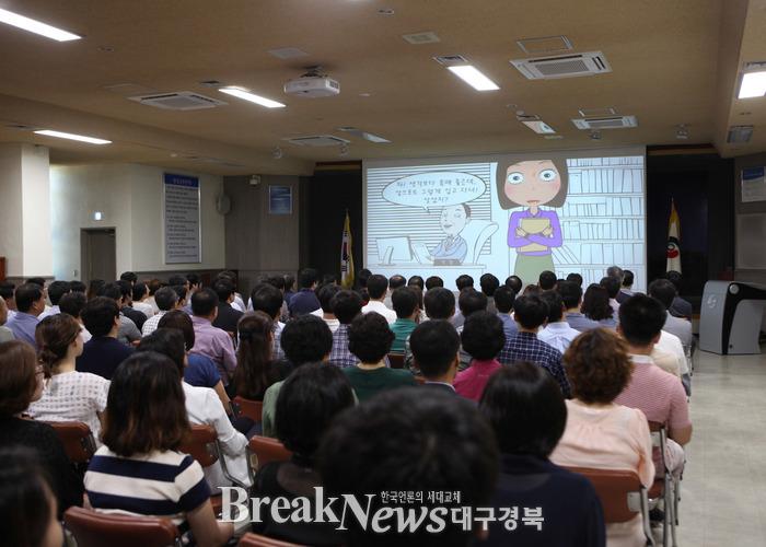 이번 특강에 임하는 구경렬 강사는 감사교육원 전략감사단 제2과 과장으로 감사교육원 내에서도 적극행정 면책제도 교육에 관한 손꼽히는 전문강사로 본 제도의 내용 및 신청방법에 대한 절차해설과 함께 업무수행과정에서 빈번하게 발생되는 다양한 사례를 중심으로 공무원이 이해하기 쉽게 강의를 진행해 공직자 청렴마인드 향상에 크게 기여하는 계기가 되었다.