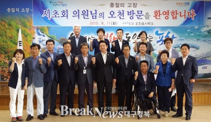 또한 자치행정위원회(위원장 김성조)에서도 비회기중에 간담회를 열어 현안사항에 대해 논의를 필치는 등 포항시의회의 열정적인 의정활동이 귀감이 되고 있다. 시초회는 매월 초선의원들의 지역구를 순회하면서 지역 주민들의 의견을 수렴하고 현장에서 민원을 직접 살피기 위해 지역구별 현장방문을 실시하고 있다. 이번 달에는 충절의 고장인 오천읍을 방문했다. 오천은 현재 냉천 고향의 강 정비사업, 국도 14호선 확포장 공사, 오천 문덕1교 도시계획도로 개설, 오천읍민 복지회관 건립, 오천 파출소 건립 공사 한창이며, 인구 5만3천으로 곧 8만을 바라보는 포항 남구의 관문의 시가지인 만큼 민원사항 또한 많다.