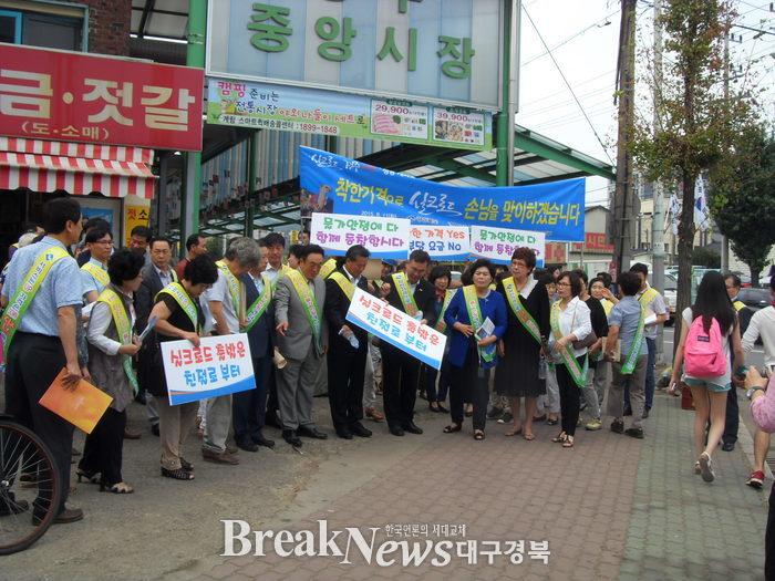 무더운 날씨 속에서도 실크로드경주2015 행사의 성공을 기원하는 마음으로 플랜카드, 어깨띠, 현수막 등 홍보물을 활용한 대 시민 홍보도 펼쳤다.