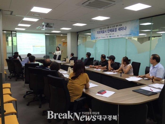 【브레이크뉴스 포항】김가이 기자= 경북지식재산센터(센터장 정연용)는 3일 오후 2시 포항창조경제혁신센터 5층 회의실에서 지자체 공무원, 지역특산품 조합 및 단체관계자 20여명이 참석한 가운데 양질의 일자리 창출 및 신성장 동력확보를 위한 ‘지리적표시 단체표장 세미나’를 개최했다.