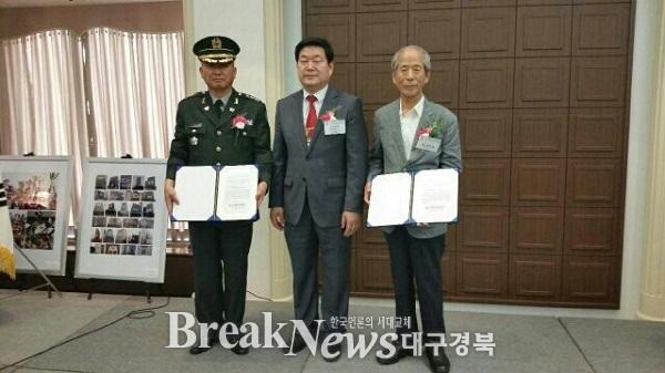 도전한국인본부와 대한민국최고기록인증원이 주관하고 광복70주년기념사업추진위원회 등의 후원으로 열린 이번 시상식은 광복70주년을 기념해 대한민국 발전과 나라사랑운동을 실천해 온 기관 및 단체, 개인을 대상으로 시상했다. 심사위원장을 맡은 숙명여대 정책산업대학원 문형남 교수는 “각계 전문가들로 심사위원을 구성하고 SNS와 커뮤니티 등의 빅데이터 분석, 중앙부처와 지자체 및 공공기관 등에 대한 공정하고 객관적인 심사를 통해 순위를 매겼다”며 “그동안 나라사랑 운동을 실시해 온 공로를 인증하고 격려하는데 의의가 있다”고 말했다. 한편, 육군3사는 1968년 개교 이래 지금까지 14만 4천여명의 정예장교를 배출해 ‘호국간성의 요람’으로 자리매김하면서, 국가안보의 한 축을 담당해왔다. 특히, 올해는 6․25 참전 희생미군 유가족 및 국군 참전용사 초청행사 등을 통해 한미동맹 강화와 선배세대에 대한 감사의 마음을 실천하고, 국방부가 ‘광복 70주년, 분단 70년’을 맞아 기획한 ‘2015 세계 장병 청년 통일안보 비전발표대회’에서 사관생도들이 영예의 대상을 수상한 바 있다. 육군3사 지원처장 김영수 대령은 “이번 수상은 평소 육군3사관학교가 추진해 온 다양한 나라사랑운동을 긍정적으로 평가해 준 것으로 이를 계기로 앞으로도 모든 세대가 국가 안보관을 공감하도록 더욱 노력하겠다”고 말했다. <저작권자 ⓒ 브레이크뉴스 대구경북 무단전재 및 재배포 금지>