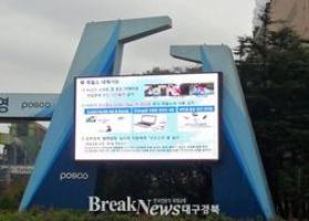 | ▲ 제철소내 설치된 대형전광판에 보안관련 준수사항을 안내하고 있는 모습 © 포스코 포항제철소 제공 |