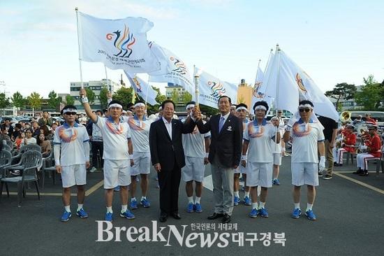 【브레이크뉴스 영천】이성현 기자 = 영천시(시장 김영석)는 전 세계 평화와 화합을 위해 오는 10월 2일부터 11일까지 도내 8개 시군에서 개최되는 2015경북문경세계군인체육대회의 성화가 지난달 29일 영천시청 앞마당에서 안치식 행사를 가졌다.