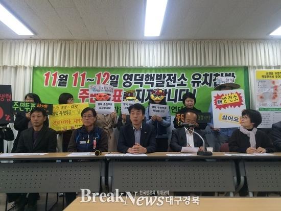 【브레이크뉴스 포항】김가이 기자= 영덕핵발전소반대 포항시민연대(이하 포항시민연대)가 2일 오전 11시 30분 포항시청 브리핑룸에서 영덕핵발전소 유치찬반 주민투표를 지지하는 기자회견을 열었다.