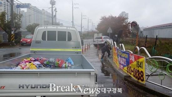 【브레이크뉴스 포항】김가이 기자= 포항시가 지난 7일 본청과 구청, 광고협회 20여명으로 단속반을 구성해 불법현수막 민·관합동 단속을 실시했다.