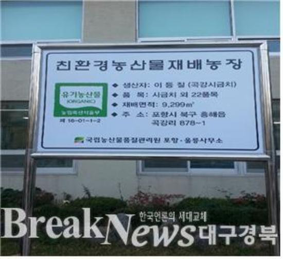 【브레이크뉴스 포항】김가이 기자= 국립농산물품질관리원 경북지원 포항·울릉사무소(소장 조성환, 이하 농관원)는 포항시 관내 친환경 유기농산물 인증을 받은 11농가의 인증필지에 유기농산물 안내 입간판을 설치한다며 소비자들에게 많은 관심을 가져 달라고 당부했다.