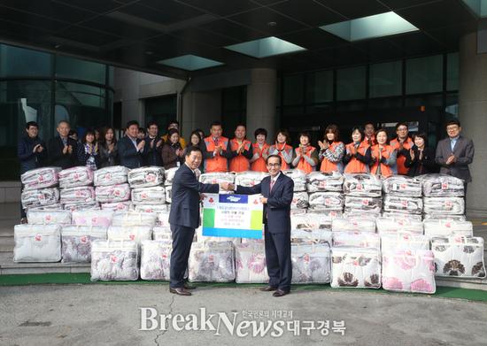 [브레이크뉴스 청도]이원우기자= 청도군사회복지사협회(협회장 박기호)에서 다가오는 겨울철을 맞아 관내 어려운 이웃을 위하여 사랑의 이불 75채(시가 300만원 상당)를 전달했다. 이번 이불 전달식은 평소 일선에서 어려운 이웃들과 마주하여 그들을 위해 불철주야 애쓰고 있는 모든 회원들의 사랑과 온정을 모아 마련한 것으로 더욱더 훈훈함을 자아냈다. 박기호 청도군사회복지협회장은 “회원들의 뜻을 모아 정성스럽게 마련한 것으로 이웃들에게 조금이나마 힘이 되었으면 좋겠고 다가오는 겨울도 따뜻하고 건강하게 보내셨으면 좋겠다”는 바람을 전했다. 이승율 청도군수는 “늘 어두운 곳에서 어려운 이웃들을 위해 애써주시고 고생하는 회원분들께 감사드리며 오늘 이것을 시작으로 행복공동체 복지청도로 거듭나기 위해 앞으로도 많은 노력을 해주시길 부탁드린다” 고 말했다. <저작권자 ⓒ 브레이크뉴스 대구경북 무단전재 및 재배포 금지>