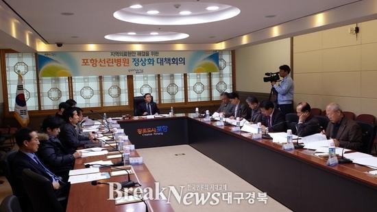 【브레이크뉴스 포항】김가이 기자= 포항시(시장 이강덕)는 25일 시청 중회의실에서 제3차 선린병원 정상화 대책위원회를 열고 박혜경 북구보건소장으로부터 선린병원 정상화 대책 경과보고를 듣고, 지난 10월 12일 구성해 활동한 소위원회로부터 그 동안의 활동상황을 보고 받았다.
