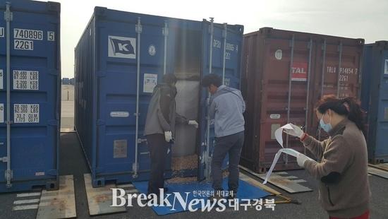 【브레이크뉴스 포항】김가이 기자= 지난 11월 26일 포항영일만항을 통해 영동화력발전소용 우드펠릿 1천200톤이 수입됐다.