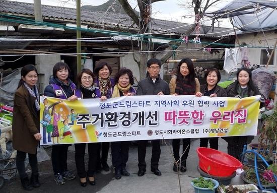 이번 사업은 겨울철 한파에 취약한 가구에 단열서비스를 제공하여 난방효율 극대화를 통한 난방비 부담 완화 및 호흡기 질환 등을 예방하고 따뜻한 겨울을 날 수 있도록 하기 위하여 시행하게 되었으며, 청도시화라이온스클럽(회장 : 조선혜)과 (주)영남건설(대표 : 김명희)이 주거환경개선사업에 적극 참여하여 벽지와 장판을 교체하고 단열공사를 통해 깨끗하고 따뜻한 거주환경을 만들었다.
