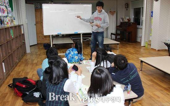 | ▲ 포항제철소 엔지니어들이 바쁜 업무에도 불구하고 ‘사랑의 공부방’ 선생님으로 정성을 다해 봉사활동을 펼치고 있다.(선생님. 제선부 강현진(30세) 씨) © 포스코 포항제철소 제공 |