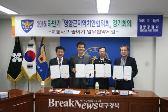 【브레이크뉴스 영양】원용길 기자= 영양경찰서(서장 구자용)는 지난 11일 오전 11시 경찰서 2층 회의실에서 교통사고예방을 위해 영양군청, 영양군의회, 영양교육지원청 등 4개 유관기관과 ‘교통사고줄이기 업무협약’을 체결했다. 업무협약 주요 내용으로는 교통안전시설물 설치 및 민원사항 상호 공유․협력, 어린이 및 노인 교통사고예방에 관한 지원, 교통사고요인행위 단속 등에 적극 협력하기로 했다. 이날 협약을 체결한 각 기관장은 한마음 한뜻으로 소중한 생명을 지켜 살기 좋은 영양군을 만들자고 강조했다.
