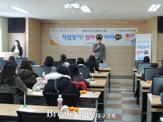[브레이크뉴스 경주]이원우기자= 경주여성새로일하기센터(센터장 류종택)는 ‘직업카드 분류를 통한 워킹맘 자녀의 진로탐색’ 이라는 주제로 12일 고용복지플러스센터 교육장에서 하자교육연구소의 주영아 강사를 초빙, 여성 구직자 및 취업자 대상 워킹맘 자녀진로 설계 프로그램을 진행했다.