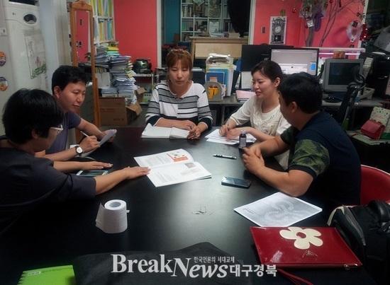 | ▲ 디자인개발 미팅 모습(예진 양현아 대표, 셀드로우 도형록 대표 외 3명) © 경북지식재산센터 제공 |