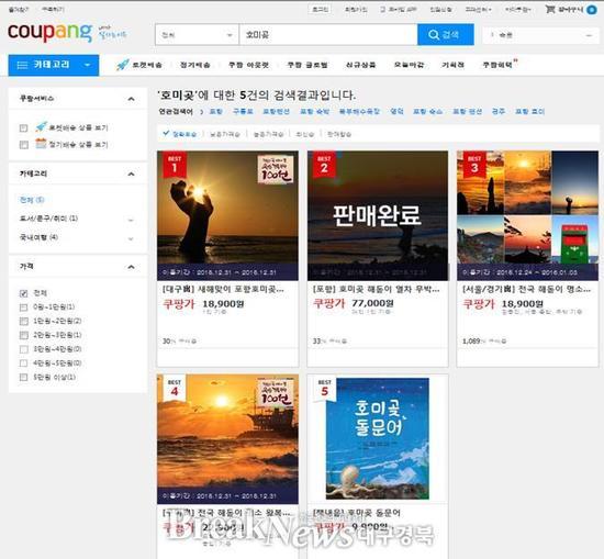 | ▲ 호미곶 한민족 해맞이축전 연계 여행상품 인기(쿠팡) © 포항시 제공 |