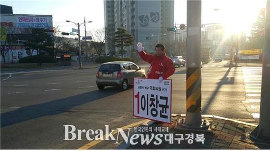 【브레이크뉴스 포항】김가이 기자= 이창균 새누리당 포항북 국회의원예비후보는 30일 가장 먼저 새벽을 여는 죽도시장 어판장과 포항시 청소과를 3일 연속 방문하는 것으로 일정을 시작했다.